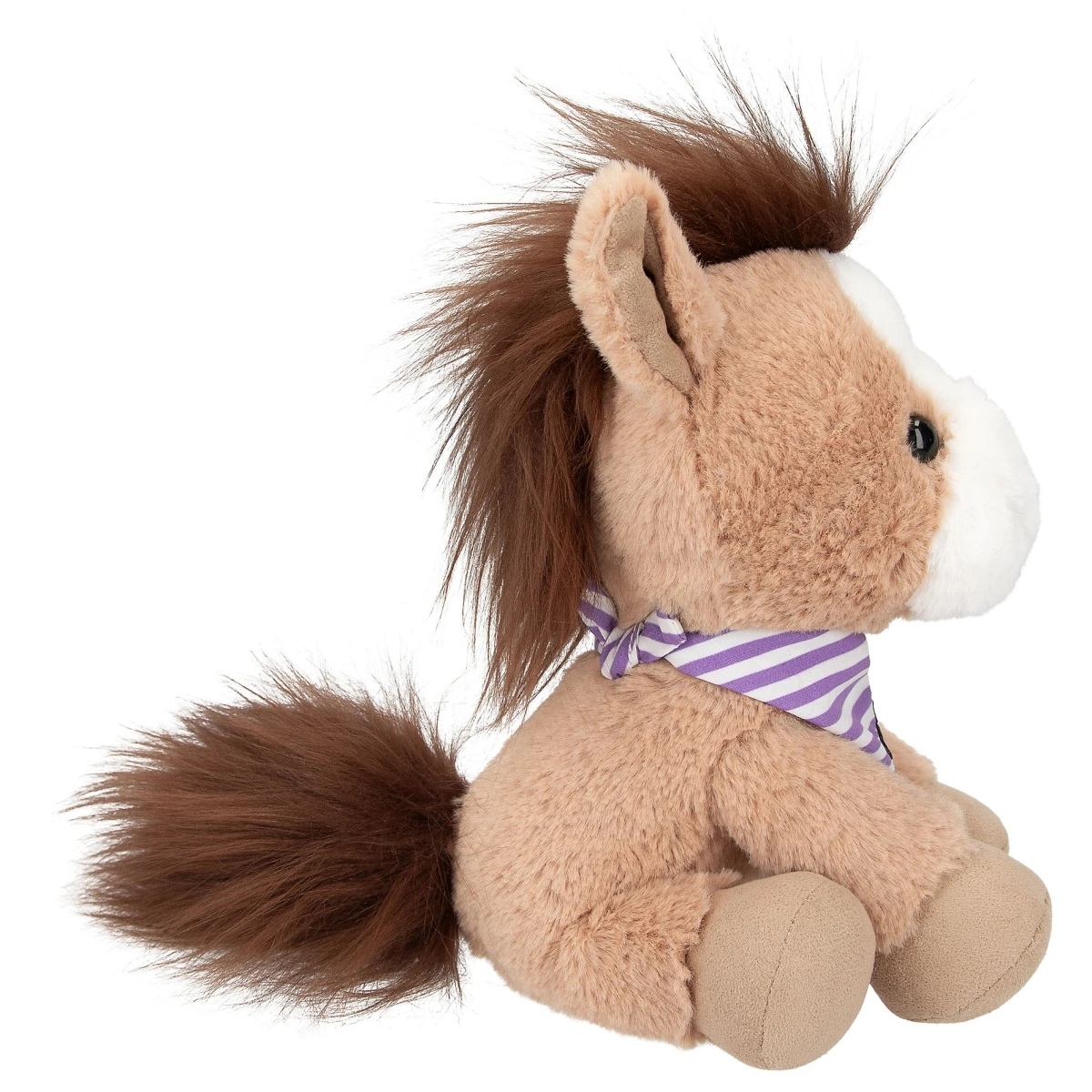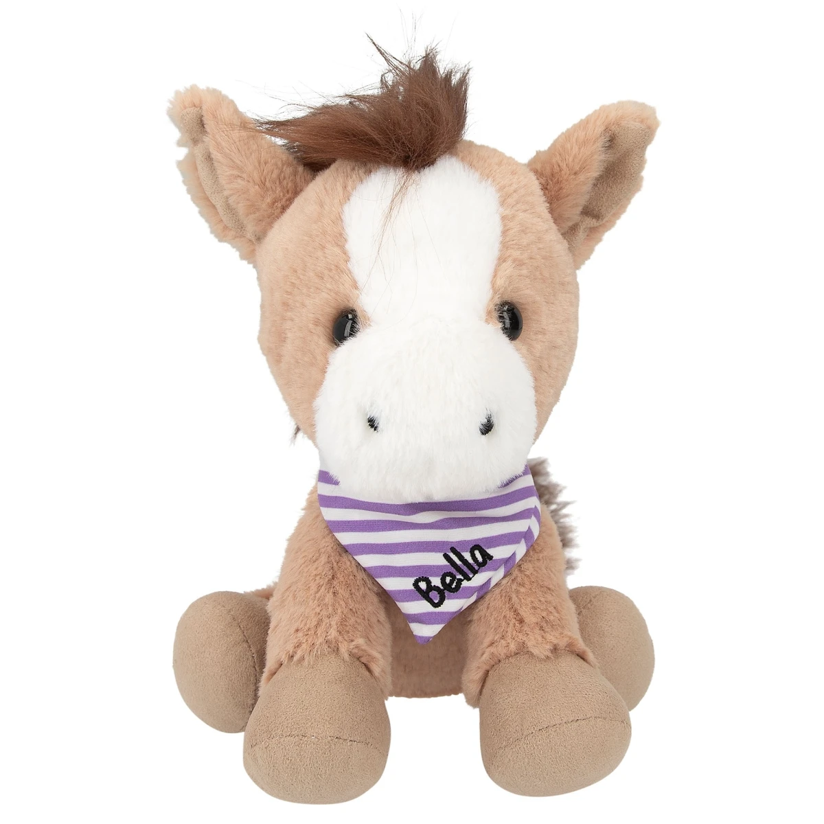 Es hat treue schwarze Knopfaugen und trägt ein Halstuch mit Namensstickerei.
