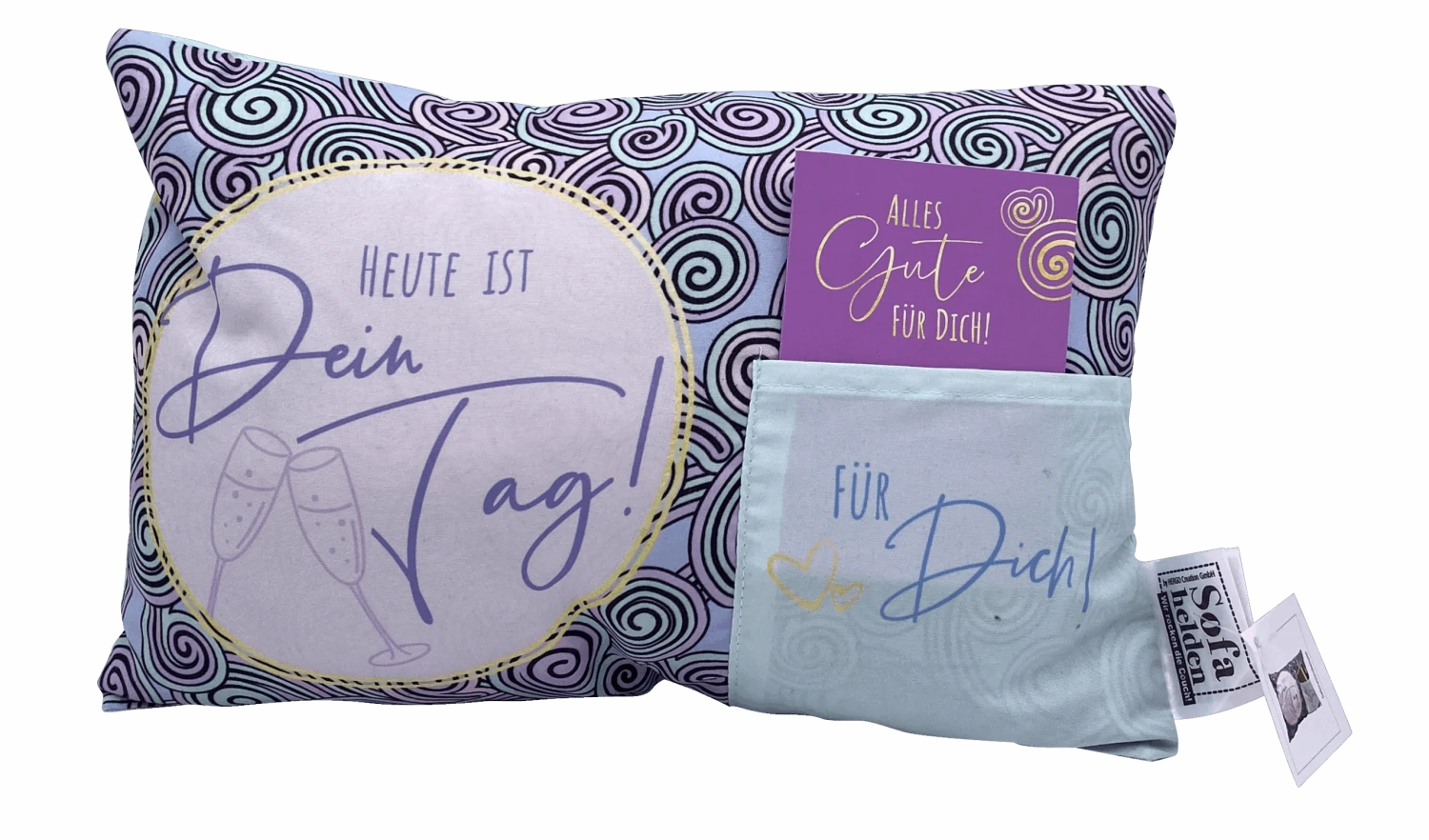 Das perfekte Geschenk-Kissen mit Fach für Handy, Fernbedienung oder Brille.