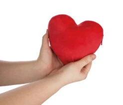 Am Rücken des Kuscheltiers befindet sich ein Reißverschluss. Diesen kann man öffnen, so das Bärenmädchen umstülpen / wenden und erhält dann ein kleines Herzkissen in rot.