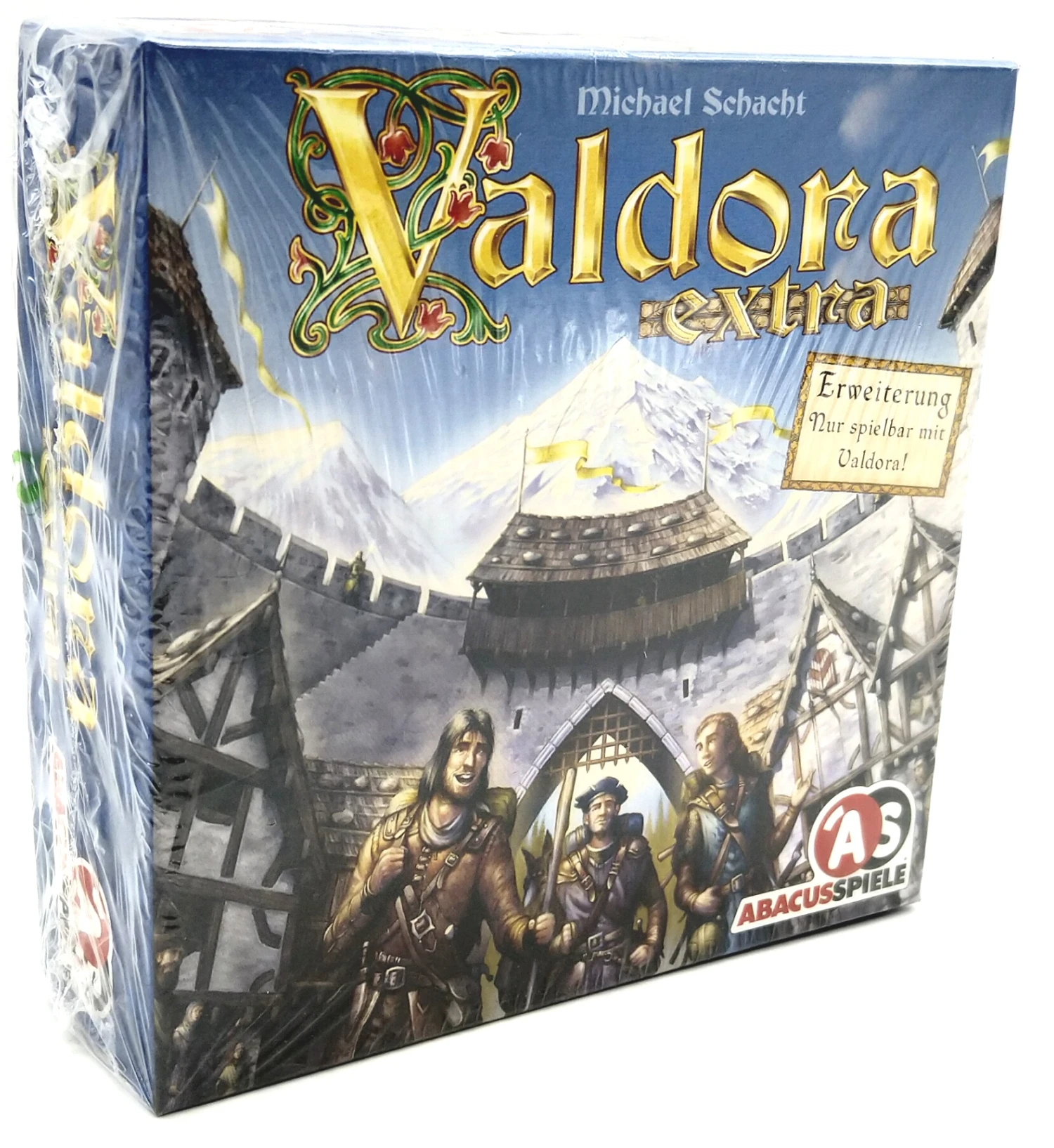 Enthält auch das Material für Valdora-Duell, eine Variante für zwei Spieler und eine besondere Spielfigur.